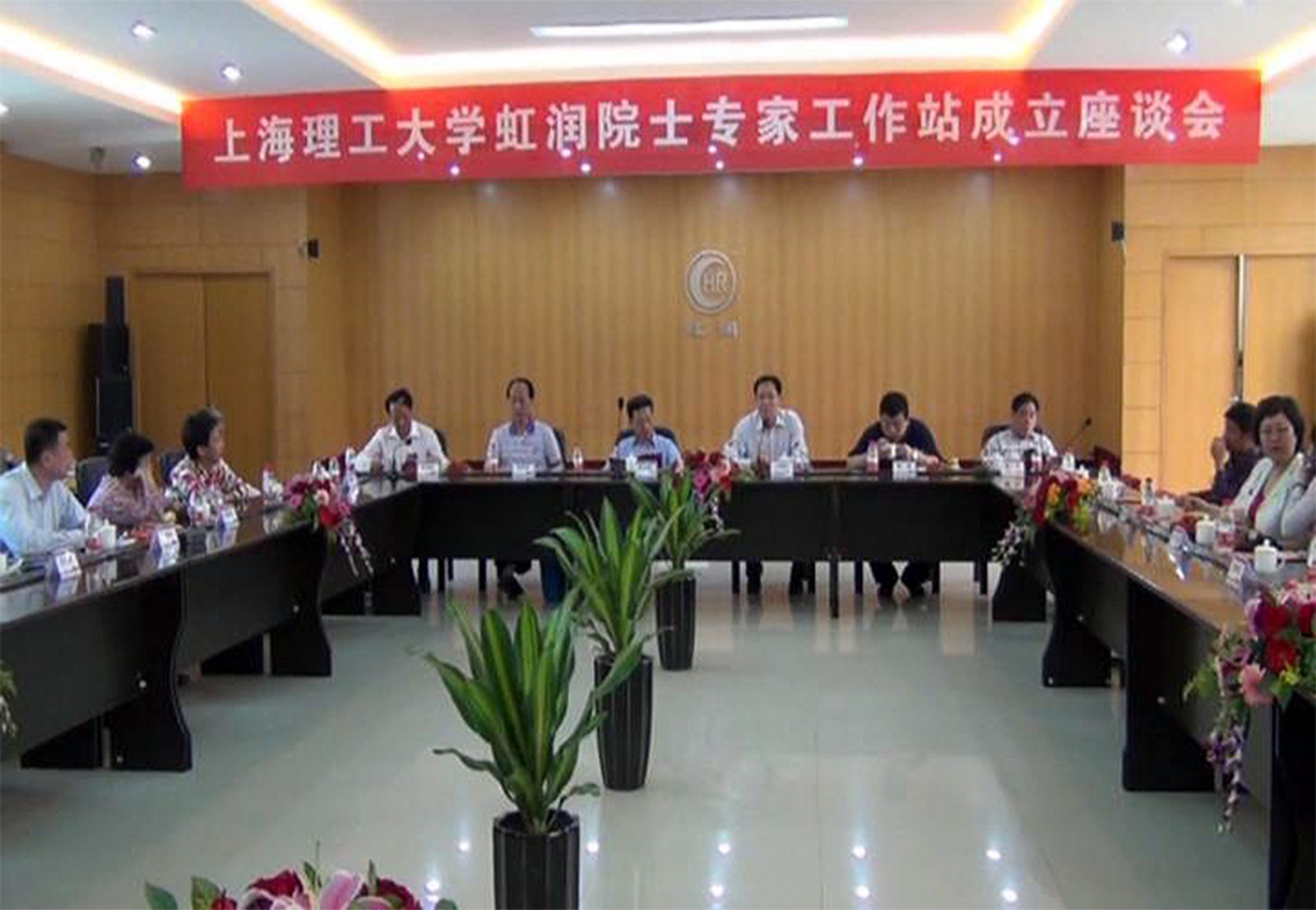 | 莊松林院士在座談會(huì)上講話 | 上理工虹潤(rùn)院士專家工作站揭牌儀式 |