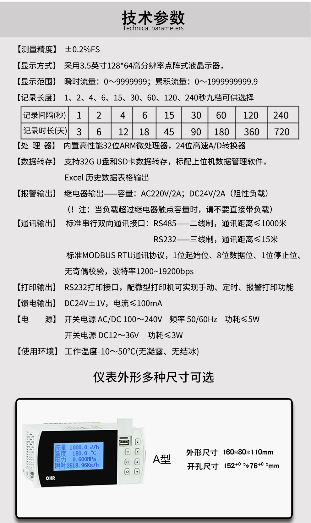 OHR-G630/G630R系列液晶天然氣流量積算控制儀/記錄儀