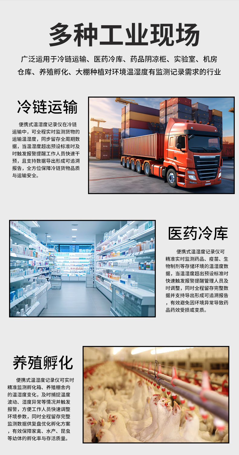 虹潤(rùn)公司是專(zhuān)業(yè)生產(chǎn)環(huán)境監(jiān)測(cè)儀表的國(guó)家專(zhuān)精特新“小巨人”企業(yè)。生產(chǎn)的便攜式溫濕度記錄儀,具有溫濕度記錄與轉(zhuǎn)存,手機(jī)充電電池,磁吸或壁掛安裝,故障報(bào)警提示,配上位機(jī)軟件等特點(diǎn)。產(chǎn)品獲得一種手持式低功耗溫濕度檢測(cè)儀、無(wú)紙記錄儀等2項(xiàng)國(guó)家發(fā)明專(zhuān)利,主持起草物聯(lián)網(wǎng)智能溫度儀表通用技術(shù)條件、冷鏈溫度記錄儀等2項(xiàng)國(guó)家標(biāo)準(zhǔn),通信系統(tǒng)多通道數(shù)據(jù)采集控制終端規(guī)范軍用標(biāo)準(zhǔn),以及現(xiàn)場(chǎng)設(shè)備集成等5項(xiàng)智能制造國(guó)家標(biāo)準(zhǔn),參與國(guó)際5G標(biāo)準(zhǔn)制定,取得便攜式溫濕度記錄儀等3項(xiàng)相關(guān)軟件著作權(quán)。產(chǎn)品廣泛應(yīng)用于冷鏈運(yùn)輸、醫(yī)藥冷庫(kù)、藥品陰涼柜、實(shí)驗(yàn)室、機(jī)房倉(cāng)庫(kù)、養(yǎng)殖孵化、大棚種植等諸多領(lǐng)域。
