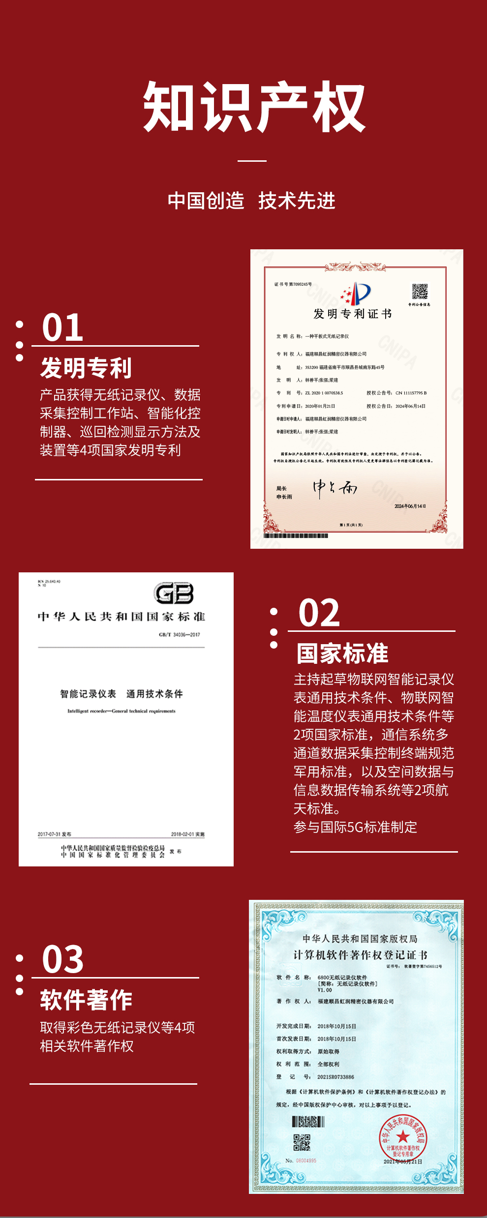 虹潤公司是專業(yè)生產(chǎn)無紙記錄儀的國家專精特新“小巨人”企業(yè)。生產(chǎn)的彩色無紙記錄儀,具有8路全隔離輸入,數(shù)據(jù)記錄與轉(zhuǎn)存,配套上位機管理軟件,RS485/以太網(wǎng)通訊等特點。產(chǎn)品獲得無紙記錄儀、數(shù)據(jù)采集控制工作站、智能化控制器、巡回檢測顯示方法及裝置等4項國家發(fā)明專利;主持起草物聯(lián)網(wǎng)智能記錄儀表通用技術(shù)條件、物聯(lián)網(wǎng)智能溫度儀表通用技術(shù)條件等2項國家標準,通信系統(tǒng)多通道數(shù)據(jù)采集控制終端規(guī)范軍用標準,以及空間數(shù)據(jù)與信息數(shù)據(jù)傳輸系統(tǒng)等2項航天標準,參與國際5G標準制定;取得彩色無紙記錄儀等4項相關(guān)軟件著作權(quán)。產(chǎn)品廣泛應(yīng)用于石化、冶金、電力、制藥、新能源、農(nóng)業(yè)等諸多領(lǐng)域。