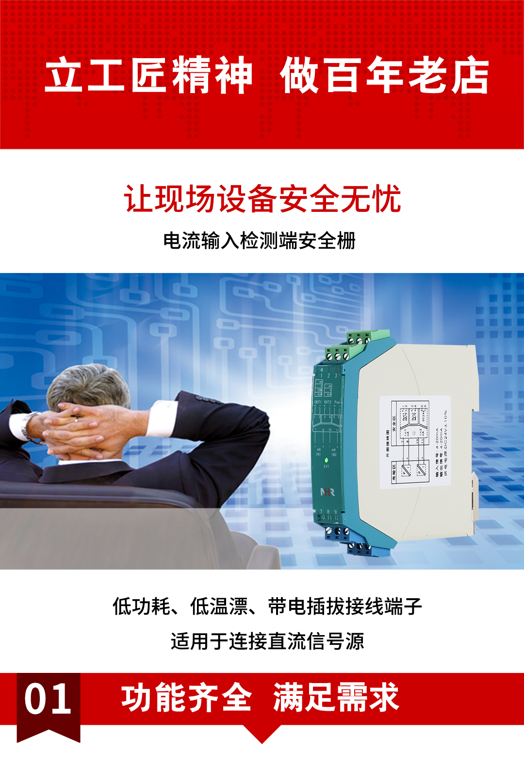 虹潤(rùn)公司是專業(yè)生產(chǎn)隔離器的國(guó)家專精特新“小巨人”企業(yè)。生產(chǎn)的隔離式安全柵涵蓋信號(hào)電流輸入、電壓輸入、熱電阻輸入、熱電偶輸入、頻率輸入、開(kāi)關(guān)量輸入等多種產(chǎn)品類型。產(chǎn)品獲得具備減震抗干擾能力的溫度變送器、信號(hào)隔離器、一種二端子模塊、無(wú)源信號(hào)隔離器等4項(xiàng)國(guó)家發(fā)明專利,主持起草物聯(lián)網(wǎng)智能溫度儀表、現(xiàn)場(chǎng)設(shè)備工具(FDT)接口規(guī)范、工業(yè)過(guò)程測(cè)量和控制系統(tǒng)用溫度變送器等3項(xiàng)國(guó)家標(biāo)準(zhǔn),以及通信系統(tǒng)多通道數(shù)據(jù)采集控制終端規(guī)范軍用標(biāo)準(zhǔn)。參與國(guó)際5G標(biāo)準(zhǔn)制定,取得智能隔離式安全柵等4項(xiàng)相關(guān)軟件著作權(quán)。產(chǎn)品廣泛應(yīng)用于石油、電力、化工,冶金、智能制造、污水處理等諸多行業(yè)。