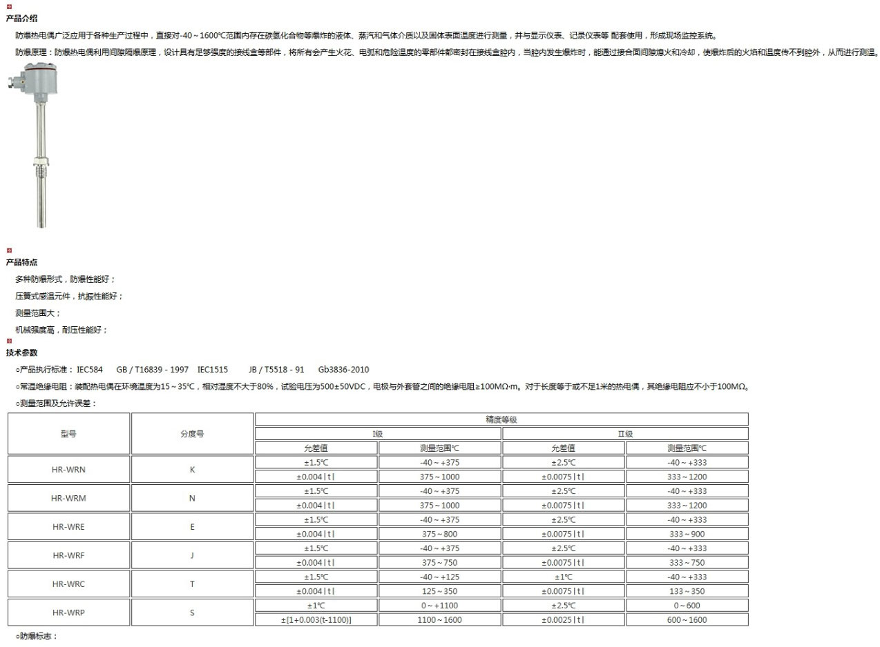 隔爆熱電偶是一種溫度傳感器,在化學(xué)工業(yè)自控系統(tǒng)中應(yīng)用極廣,通過(guò)溫度傳感器,可將控制對(duì)象的溫度參數(shù)變成電信號(hào),傳遞給顯示、記錄和調(diào)節(jié)儀,對(duì)系統(tǒng)施行檢測(cè)、調(diào)節(jié)和控制。在化工廠,生產(chǎn)現(xiàn)場(chǎng)常伴有各種易燃、易爆等 化學(xué)氣體、蒸汽,如果使用普通的熱電偶非常不安全,極易引起環(huán)境氣體爆炸。